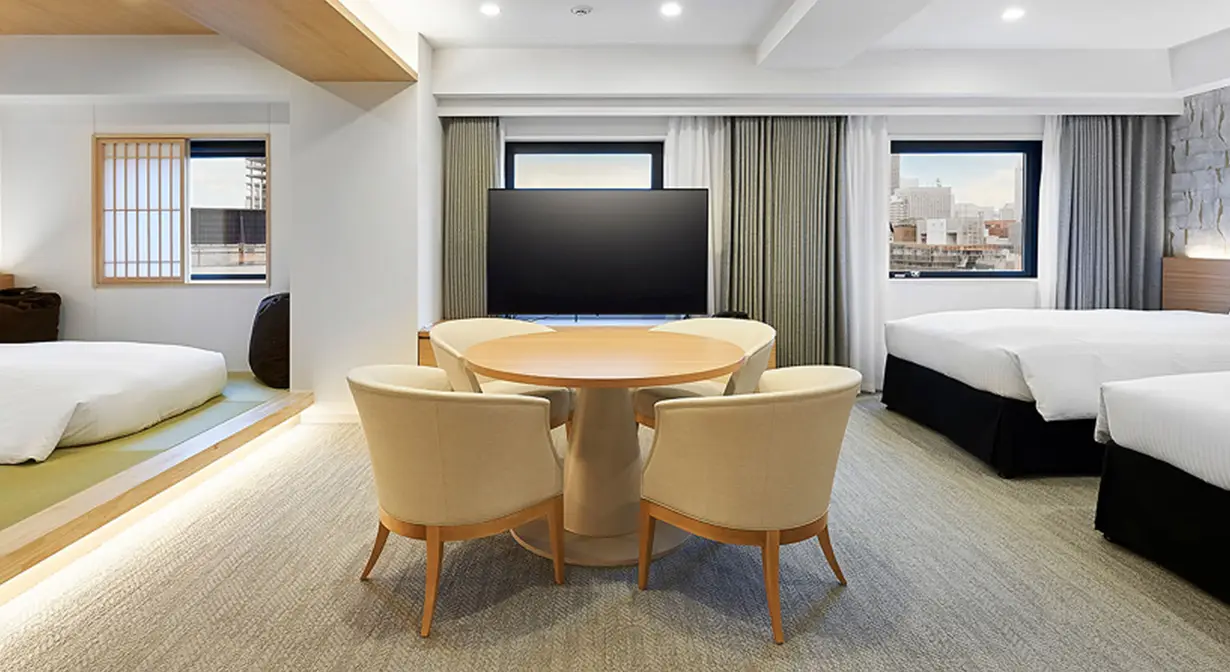 複数名で泊まれる客室、愛犬と泊まれる客室などニーズに合わせて、さまざまなタイプの客室がございます。※写真は4名宿泊可能な客室です。